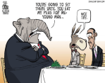 Remember back in 2011 when Obama had GOP members over for dinner, and he served so many peas that the republicans made him eat their servings, and a bunch of cartoonists argued about who made whom eat peas?