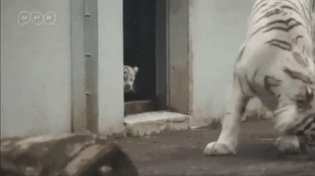 WAIT ISN’T THIS ONE OF THOSE THINGS WHERE MAMA TIGERS PRETEND TO GET SCARED BY THEIR BABIES TO TEACH THEIR BABIES HOW TO HUNT AND GIVE THEM CONFIDENCE