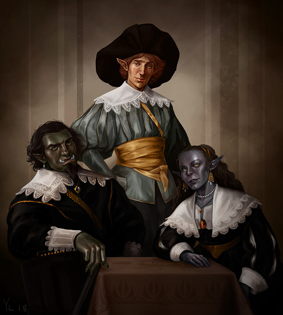 ‘Merchants council’, mid 1600s. The orc, elf and goblin was obviously of high status, though records of their names has been lost.