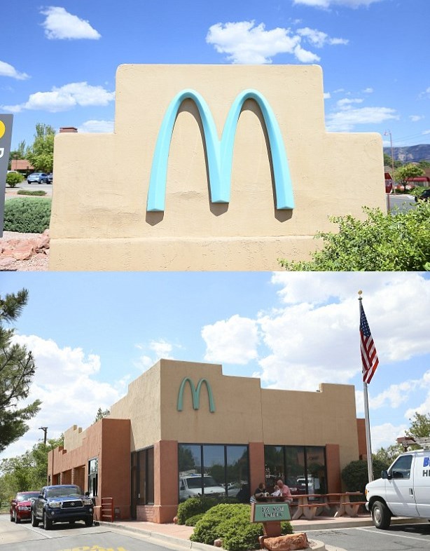 McDonald’s has been forced to open its first ever restaurant with a turquoise coloured sign after city planners said the signature yellow sign would be too garish. Officials in Sedona, Arizona told the fast-food giant they were unable to open a restaurant with the trademark yellow logo.This is due to the city’s strict regulations which prevent buildings from ruining the picturesque view of the desert.