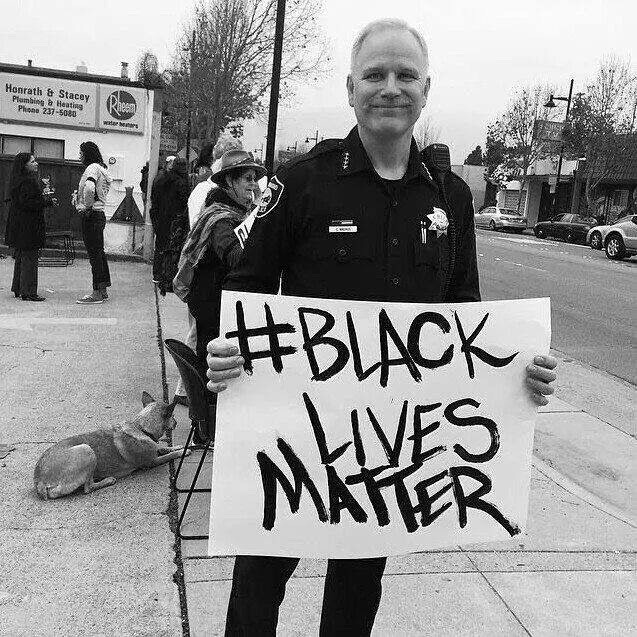 The man holding this #BlackLivesMatter sign is Richmond (CA) police chief Chris Magnus, whose department has not lost an officer or killed a citizen since 2007, the year after he took over. This is not an accident, this peacefulness is the direct result of his leadership. Police departments across the country should be looking to his department as an example to be followed.