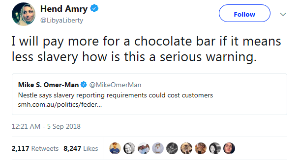 I WOULD PAY TEN TIMES AS MUCH FOR CHOCOLATE IF IT MEANT REDUCING THE AMOUNT OF SLAVES IN THE WORLD? HOW IS THIS ANY KIND OF PROBLEM.