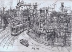 environment concept art from Tekkonkinkreet – adapted from the manga, ‘Black and White’ byTaiyō Matsumoto… Art director: Shinji Kimura – director: Michael Arias – animation by Studio 4°C…