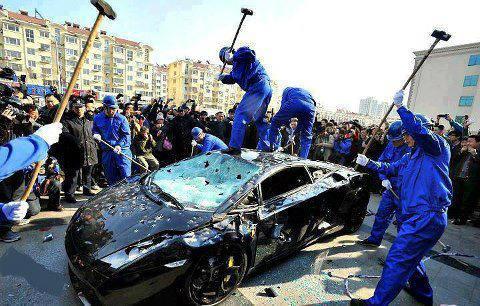 Greek workers, after months without pay, apply austerity cuts on their bosses car
