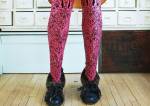 orthopedic shoes, sheathed in beige fabric to cover the metal and