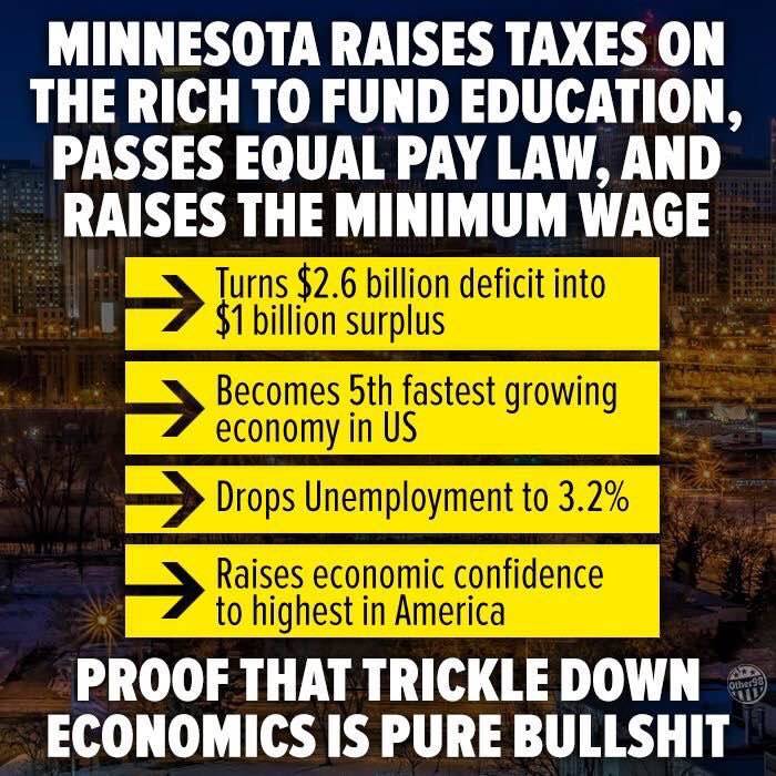 invests in infrastructure and mass transit, economy benefits. invests in environment, tourist dollars pour in. friendly to unions, jobs boom.