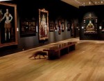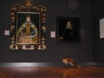 Surveillance cameras observe a fox exploring the Tudor and Georgian rooms of the National Portrait Gallery at night.